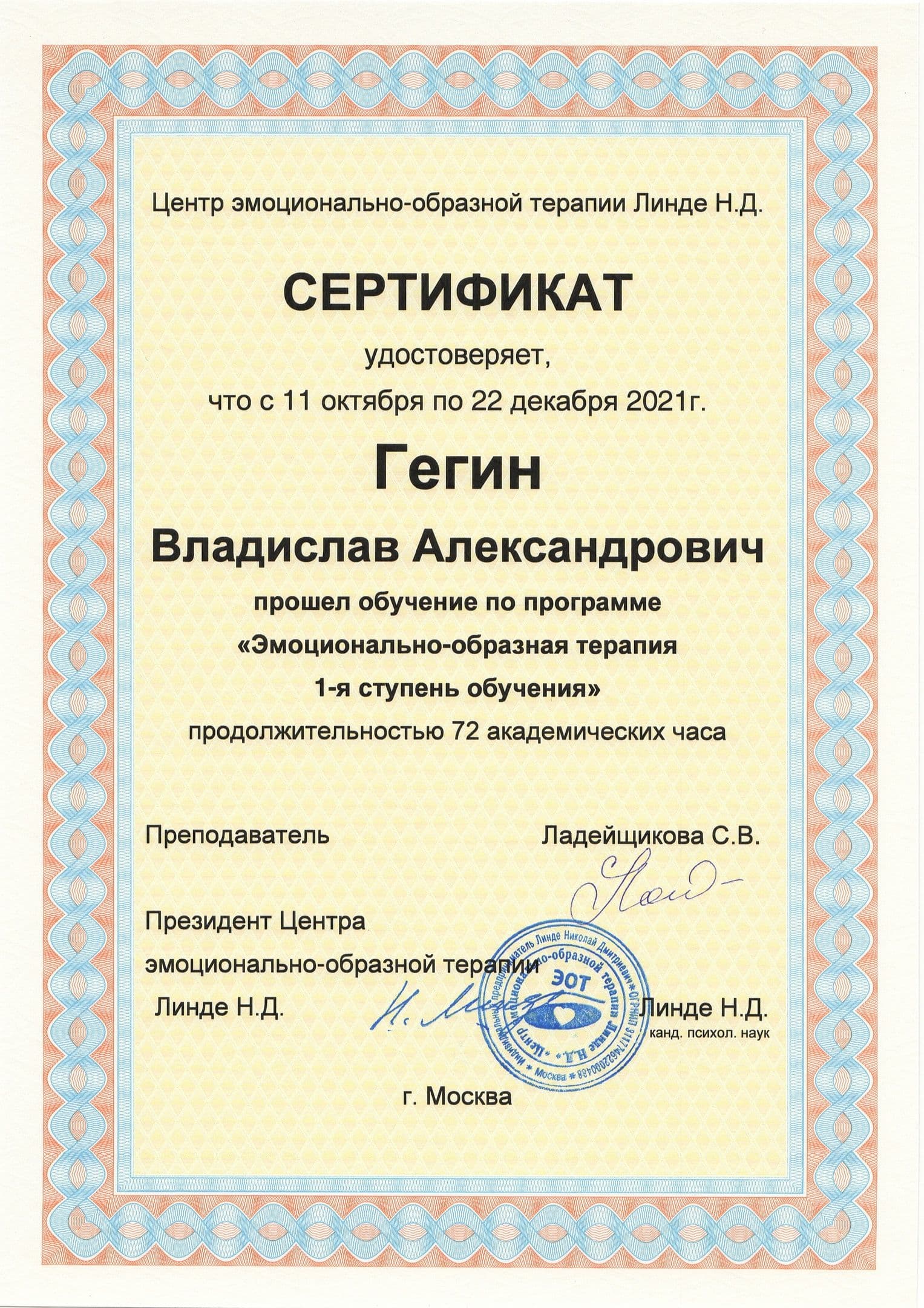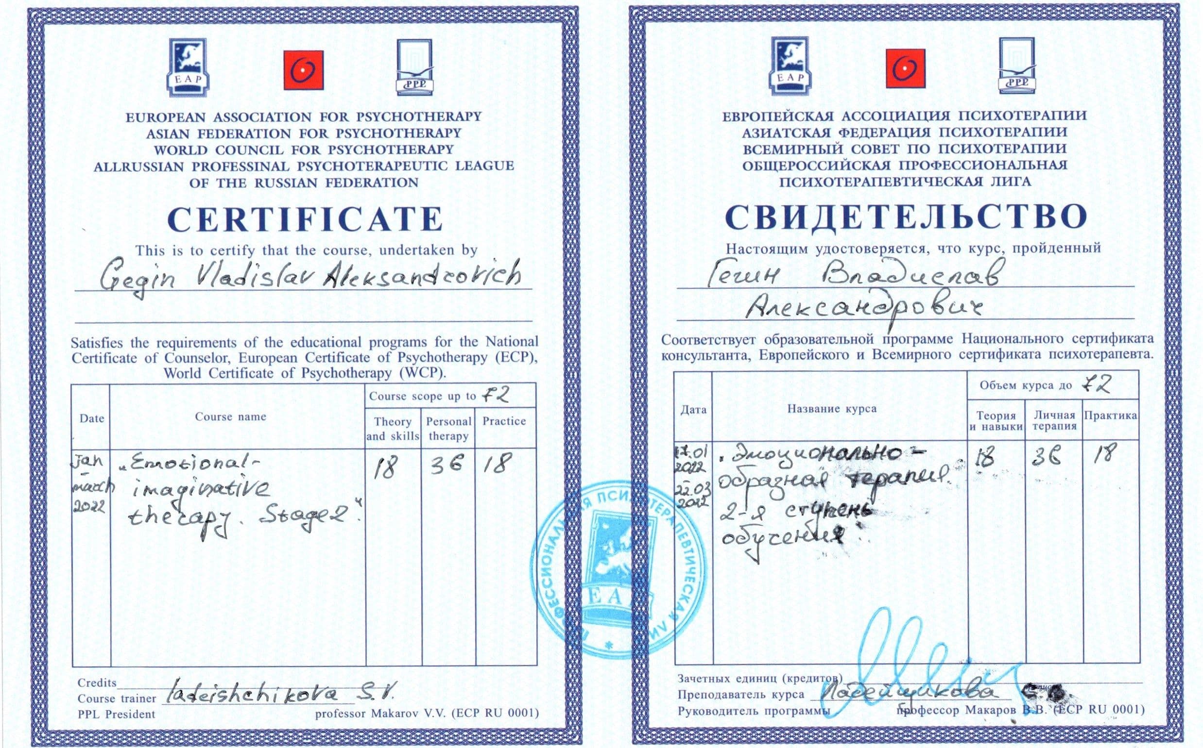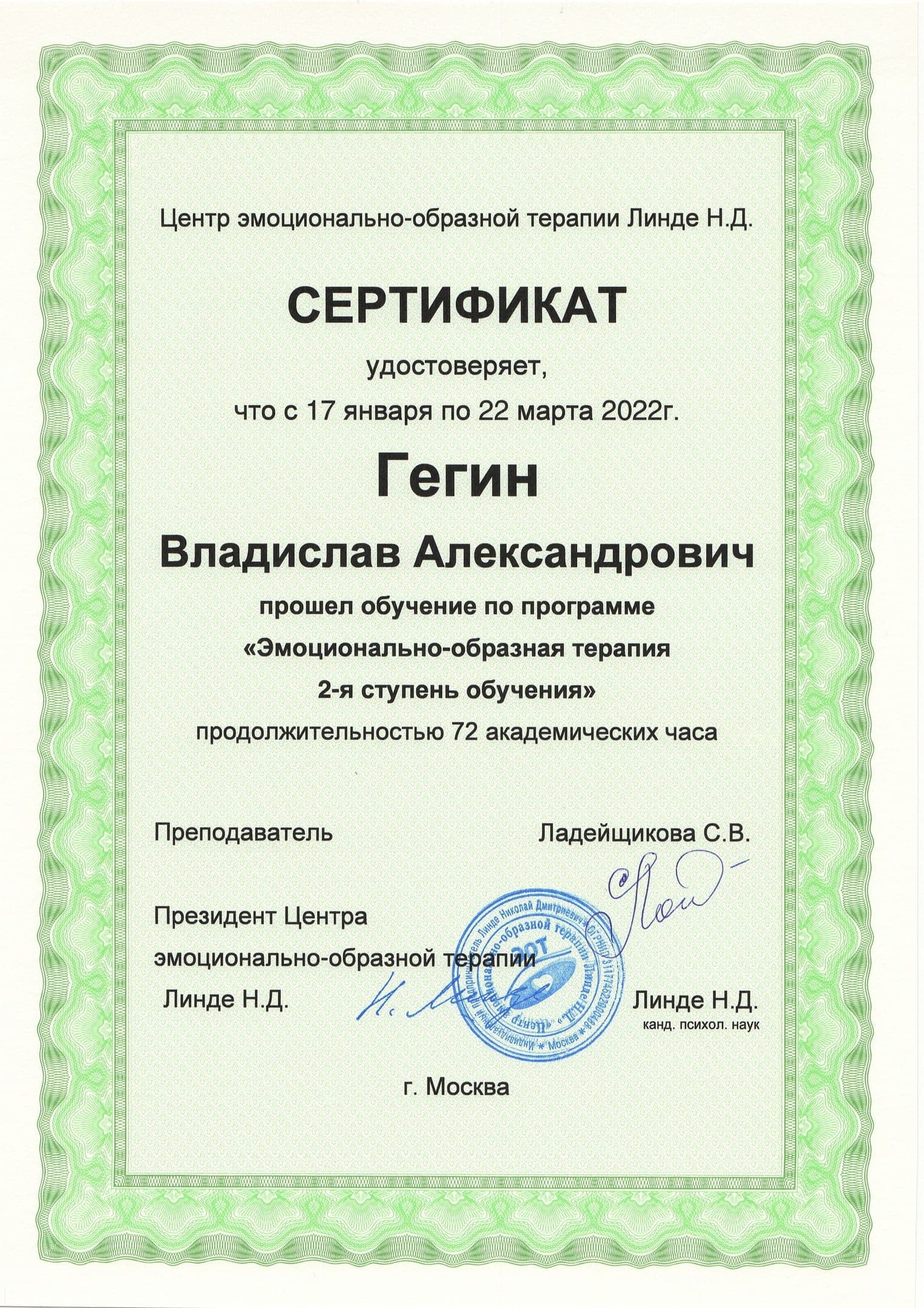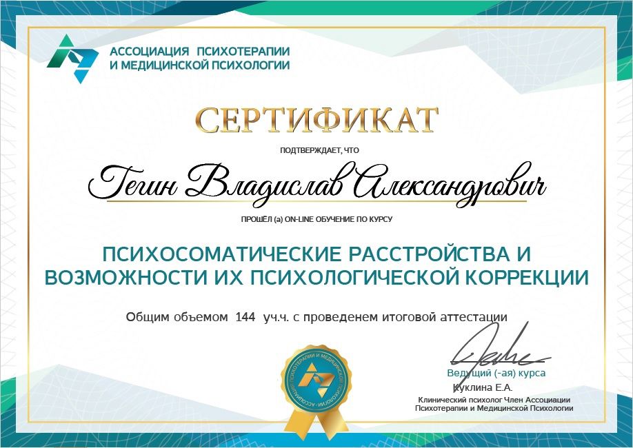 В 2020 году я завершил обучение в Санкт-Петербургском военном ордена Жукова институте войск национальной гвардии Российской Федерации по специальности «Психология служебной деятельности». С тех пор я активно работаю как психолог в области психотерапии, помогая людям справляться с различными жизненными трудностями.