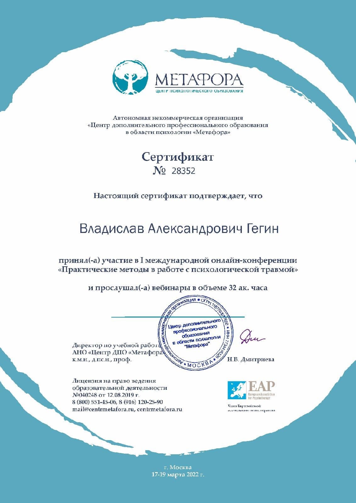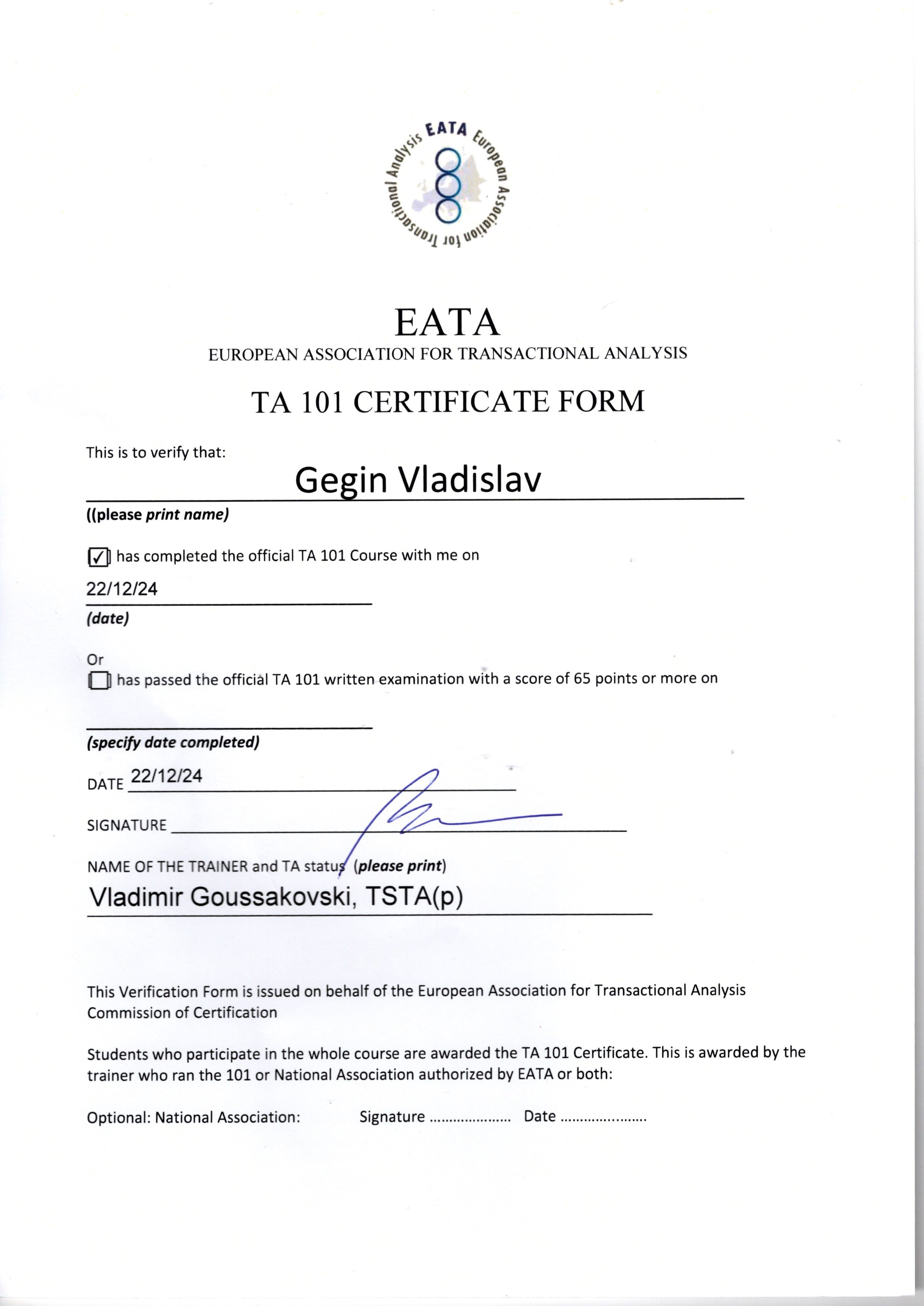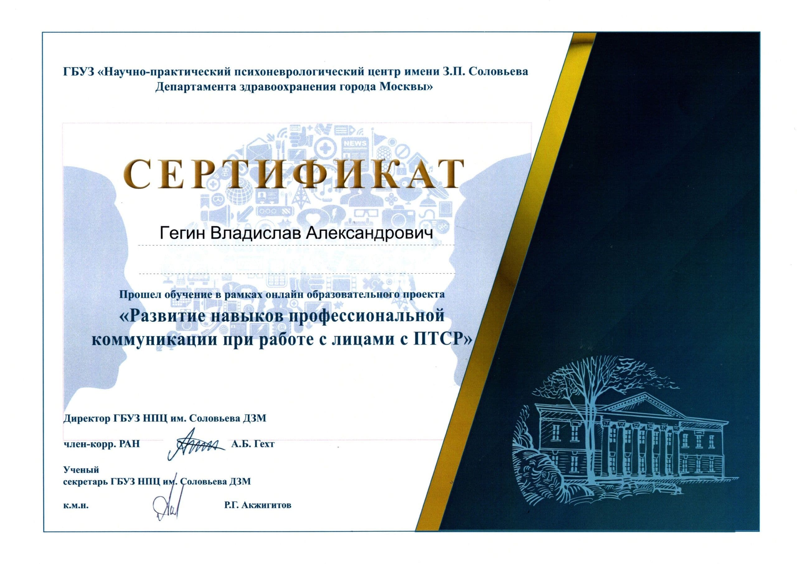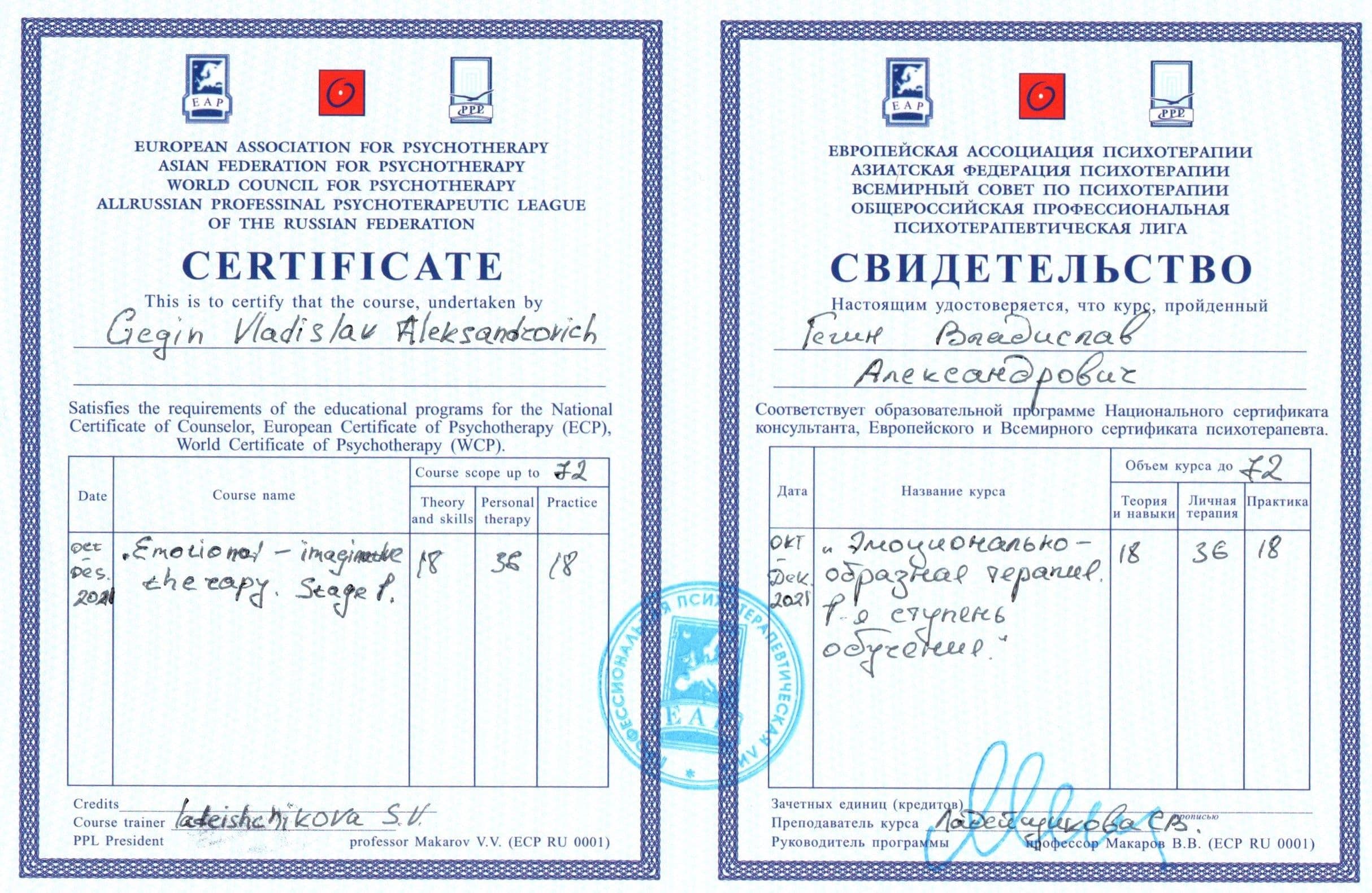 В 2020 году я завершил обучение в Санкт-Петербургском военном ордена Жукова институте войск национальной гвардии Российской Федерации по специальности «Психология служебной деятельности». С тех пор я активно работаю как психолог в области психотерапии, помогая людям справляться с различными жизненными трудностями.